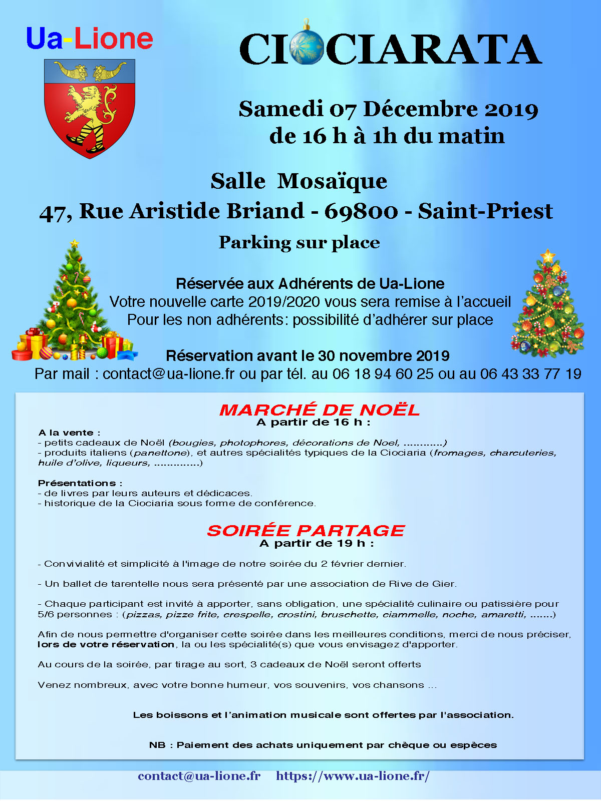 Chers amis adhérents de Ua-Lione, le RDV annuel des adhérents est organisé le 28 septembre prochain à partir de 16h à la salle Concorde de St Priest.